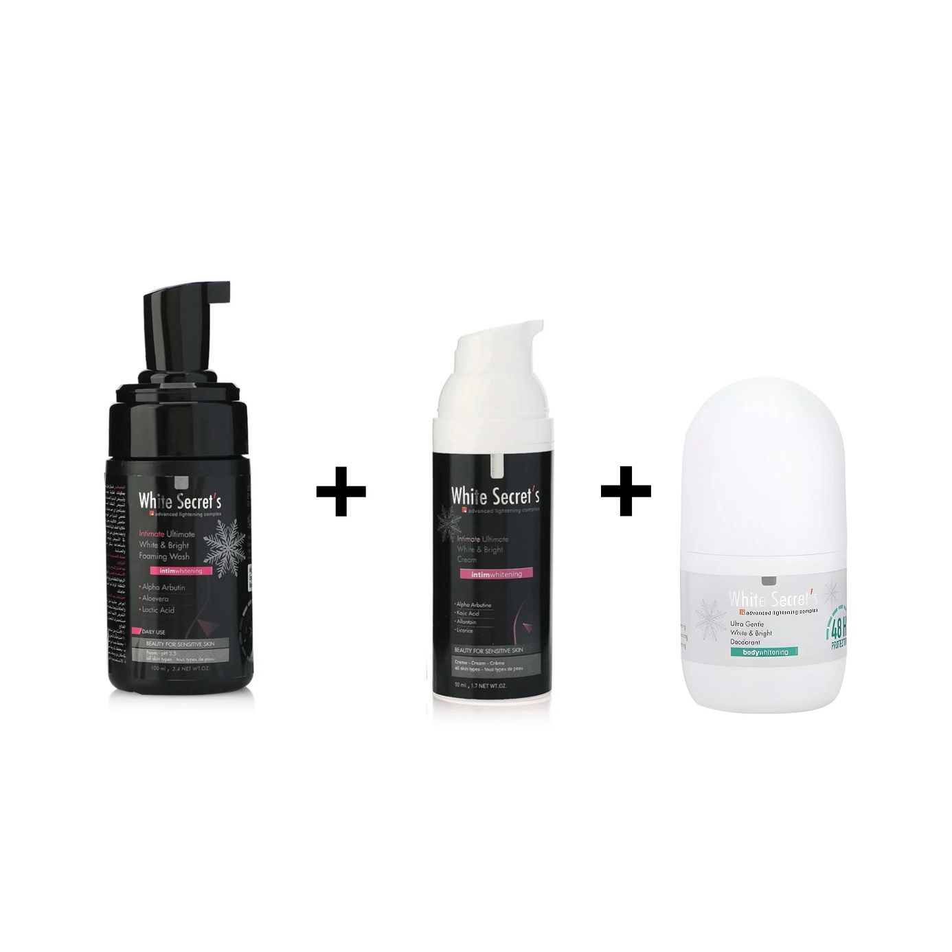 White Secret’s Intimate white & Bright Package Cleansing Foaming Wash + Cream + Whitening Deodorant
